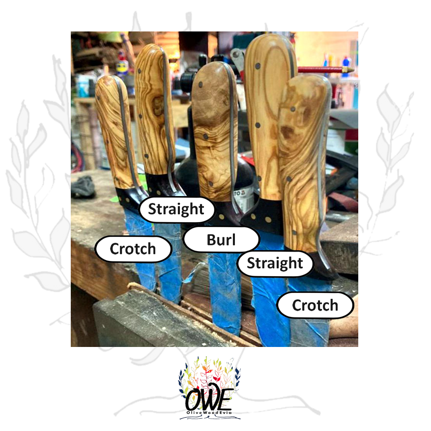 We precision-cut these blocks in our workshop in San Giorgos near Lichada on North Evia Island. The wood comes from rescued ancient olive trees that were damaged during the devastating wildfires in 2021 and again in 2023. The unique grain, quality and beauty of Evia olive wood is undeniable.