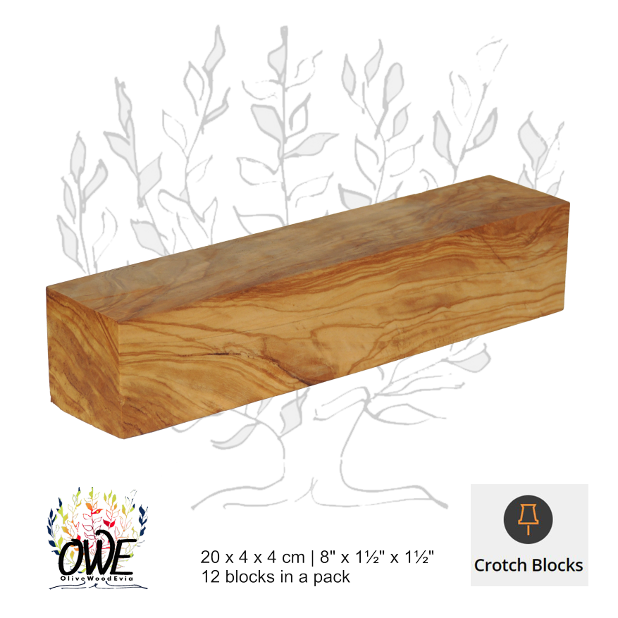 Olive Wood Crotch Blocks: Unmatched Blocks (20 x 4 x 4cm / 8″ x 1½” x 1½”) 12Pk #CB201